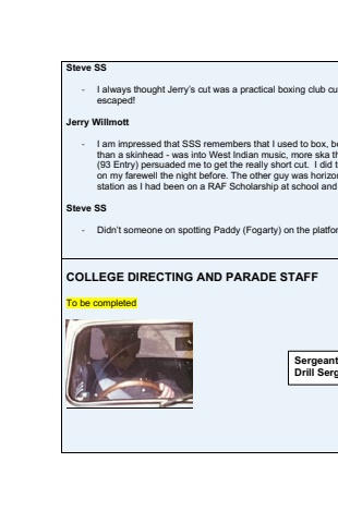 Steve SS- I always thought Jerry%u2019s cut was a practical boxing club cutescaped!Jerry Willmott- I am impressed that SSS remembers that I used to box, bethan a skinhead - was into West Indian music, more ska th(93 Entry) persuaded me to get the really short cut. I did tuon my farewell the night before. The other guy was horizonstation as I had been on a RAF Scholarship at school and Steve SS- Didn%u2019t someone on spotting Paddy (Fogarty) on the platforCOLLEGE DIRECTING AND PARADE STAFFTo be completedSergeant Drill Serg