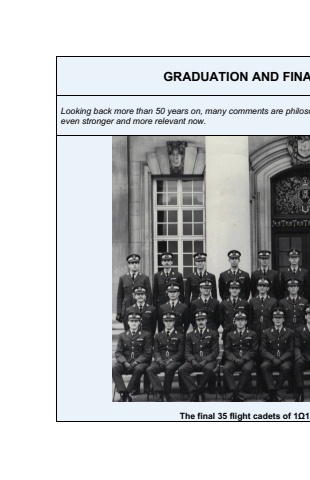 GRADUATION AND FINALooking back more than 50 years on, many comments are philosoeven stronger and more relevant now.The final 35 flight cadets of 1%u03a91
