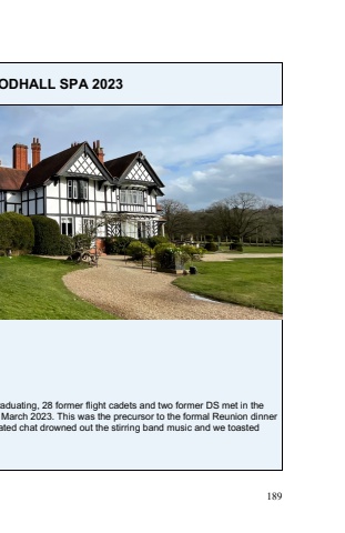 189ODHALL SPA 2023aduating, 28 former flight cadets and two former DS met in the March 2023. This was the precursor to the formal Reunion dinner ated chat drowned out the stirring band music and we toasted
