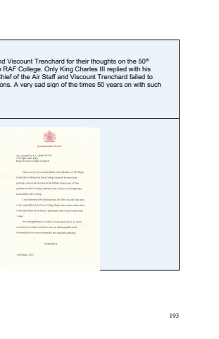 193nd Viscount Trenchard for their thoughts on the 50the RAF College. Only King Charles III replied with his Chief of the Air Staff and Viscount Trenchard failed to ons. A very sad sign of the times 50 years on with such