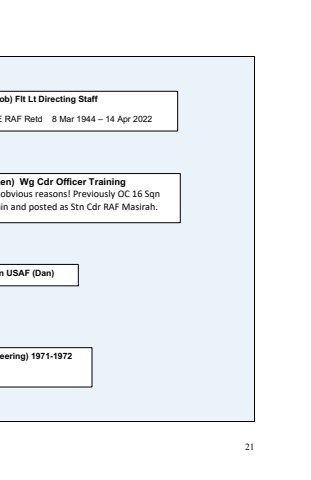 21ob) Flt Lt Directing StaffE RAF Retd 8 Mar 1944 %u2013 14 Apr 2022n USAF (Dan)eering) 1971-1972 en) Wg Cdr Officer Training obvious reasons! Previously OC 16 Sqn in and posted as Stn Cdr RAF Masirah.