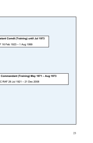 23 Commandant (Training) May 1971 %u2013 Aug 1973C RAF 26 Jul 1921 %u2013 21 Dec 2008 stant Comdt (Training) until Jul 1973F 16 Feb 1923 %u2013 1 Aug 1999