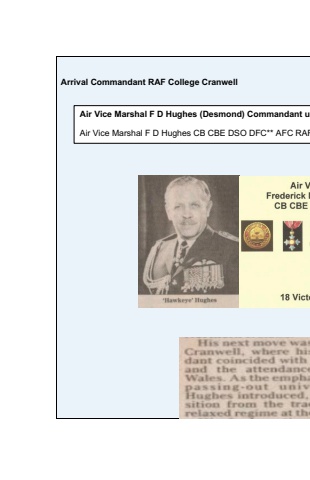 Arrival Commandant RAF College CranwellAir Vice Marshal F D Hughes (Desmond) Commandant uAir Vice Marshal F D Hughes CB CBE DSO DFC** AFC RAF