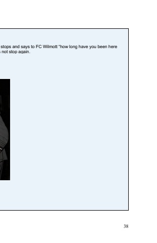 38 stops and says to FC Wilmott %u201chow long have you been here s not stop again.