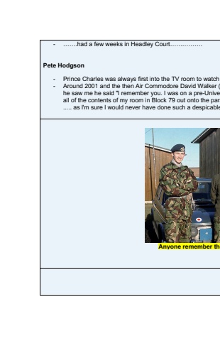 - %u2026%u2026.had a few weeks in Headley Court%u2026%u2026%u2026%u2026%u2026.Pete Hodgson- Prince Charles was always first into the TV room to watch - Around 2001 and the then Air Commodore David Walker (he saw me he said \all of the contents of my room in Block 79 out onto the para..... as l'm sure l would never have done such a despicableAnyone remember the