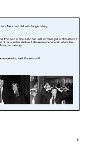 47 from Trenchard Hall with Fangio driving. ent from side to side in the bus until we managed to almost turn it ad of nuns, rather shaken! I also remember one trip where the driving on memory!emembered so well 50 years on!!!