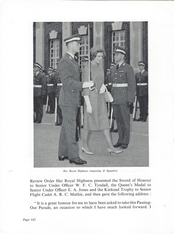 Her Royal Highness inspecting D Squadron Review Order Her Royal Highness presented the Sword of Honour to Senior Under Officer W. F. C. Tyndall, the Queen's Medal to Senior Under Officer E. A. Jones and the Kinkead Trophy to Senior Flight Cadet A. R. C. Mathie, and then gave the following address : \Out Parade, an occasion to which 1 have much looked forward. I Page 142