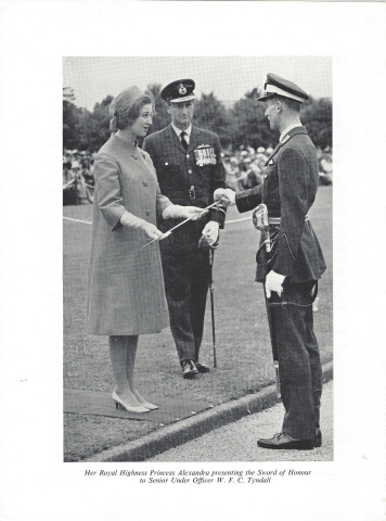 Her Royal Highness Princess Alexandra presenting the Sword of Honour to Senior Under Officer W. F. C. Tyndall