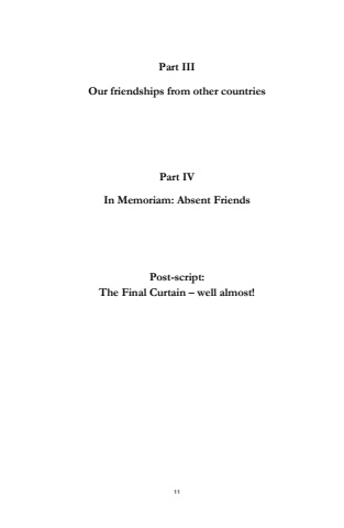 11Part IIIOur friendships from other countriesPart IVIn Memoriam: Absent FriendsPost-script: The Final Curtain %u2013 well almost!